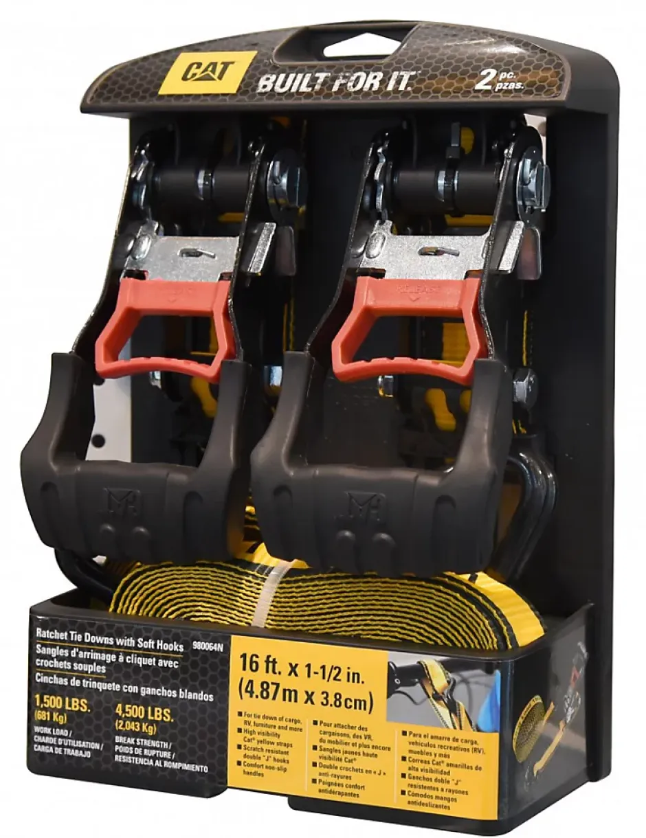 LOT DE 2 SANGLES D’ARRIMAGE A CLIQUET CATERPILLAR AVEC CROCHETSLONGUEUR : 4.87 MLARGEUR : 3.8CMCHARGE D’UTILISATION : 681 KGSPOIDS DE RUPTURE : 2043 KGSIDEAL POUR ATTACHER LES CARGAISSONS, DU MOBILIER ….SANGLE JAUNE HAUTE VISIBILITEDOUBLE CROCHET EN « J » ANTI RAYURESPOIGNEE CONFORT ANTIDERAPANTE