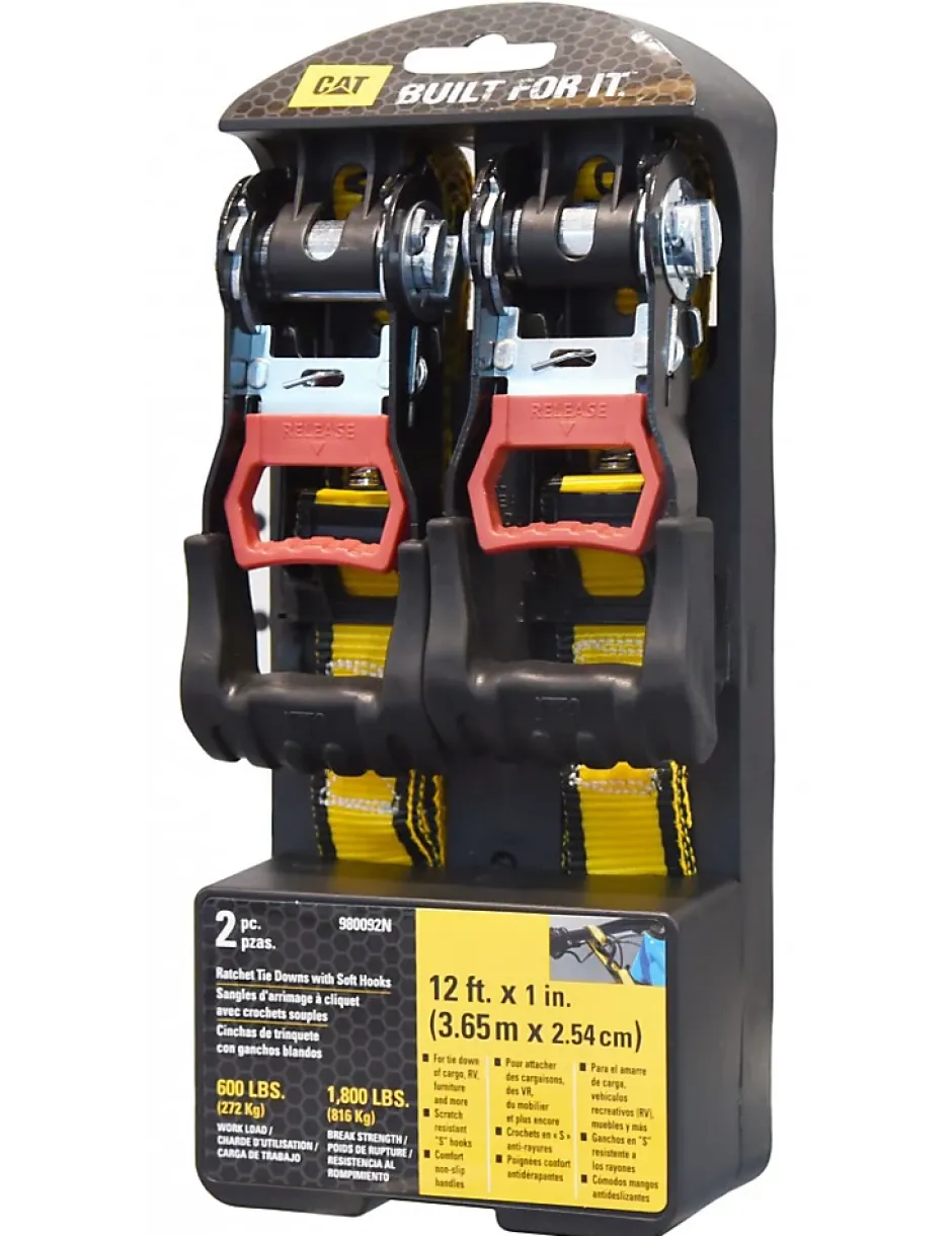 LOT DE 2 SANGLES D’ARRIMAGE A CLIQUET CATERPILLAR AVEC CROCHETSLONGUEUR : 3.65 MLARGEUR : 2.54 CMCHARGE D’UTILISATION : 272 KGSPOIDS DE RUPTURE : 816 KGSIDEAL POUR ATTACHER LES CARGAISSONS, DU MOBILIER ….SANGLE JAUNE HAUTE VISIBILITEDOUBLE CROCHET EN « S » ANTI RAYURESPOIGNEE CONFORT ANTIDERAPANTE