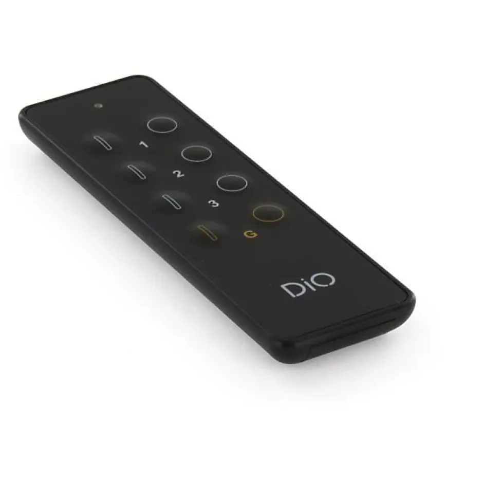 Lot de 2 télécommandes DiO Connected Home 3 canaux + 1 groupe. Télécommande ultra plate en PVC noire pour piloter lampes, volets, prises et porte de garage à distance. Mode dimmer et pénétration du signal à travers les murs. Compatible avec la gamme DiO.