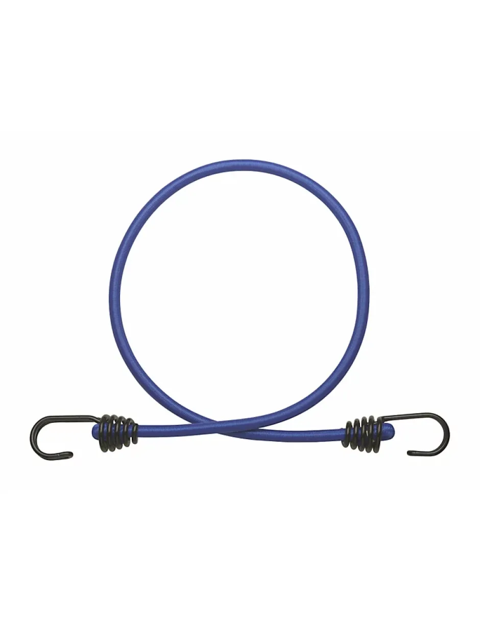 Lot de deux tendeurs, cordon en caoutchouc de latex, crochets en acier double. Bleu. Longueur 80cm. Pour rangement, camping, vélo, remorque …