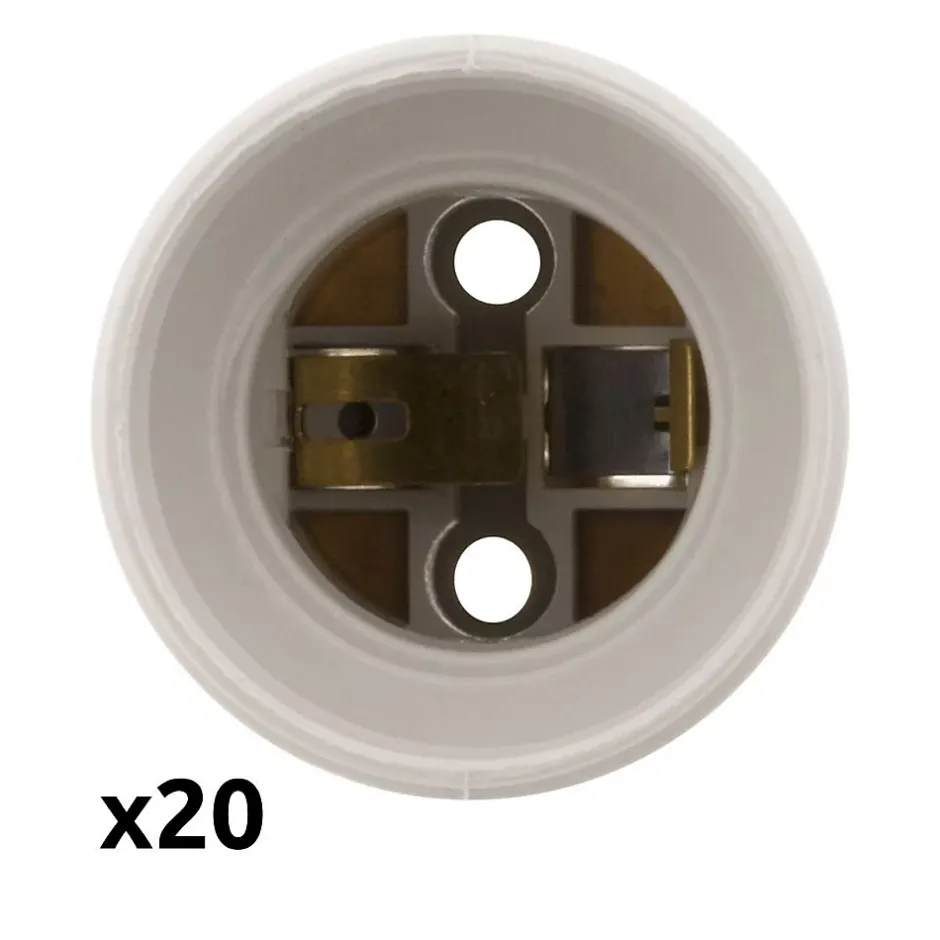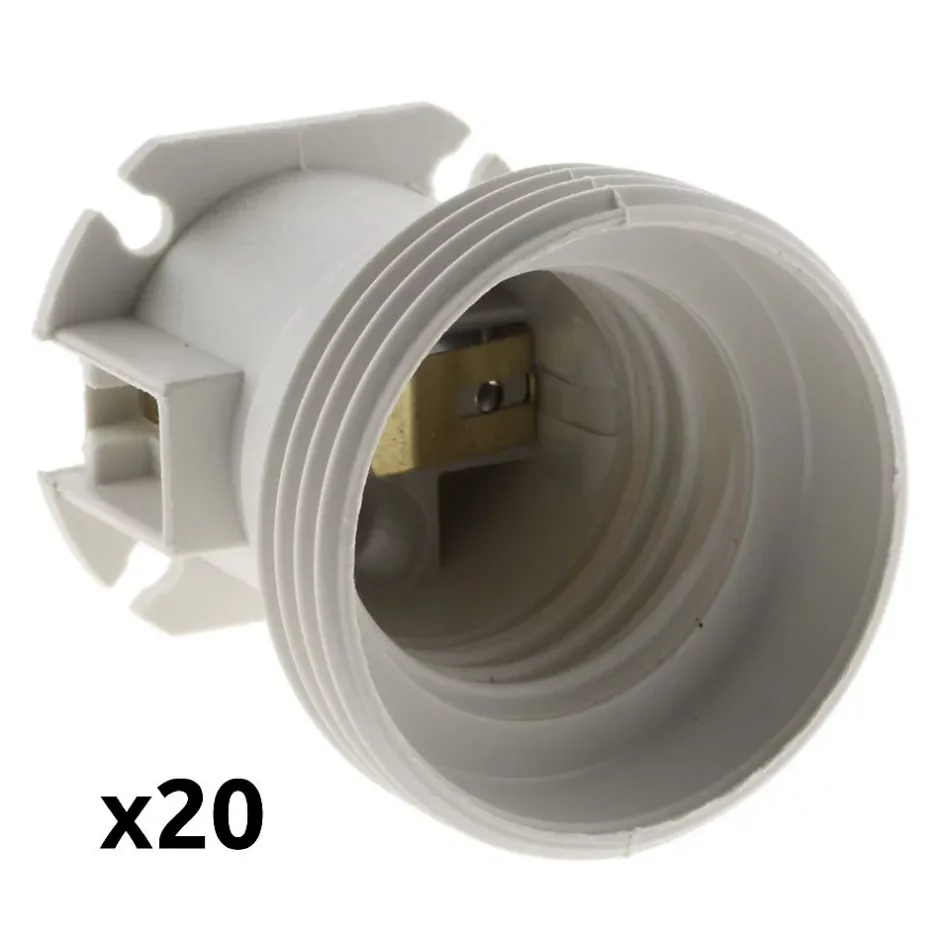 Douille de chantier. Culot : E27 (gros culot à vis). Sans bague. Idéale pour installations temporaires ou environnements de chantier. Facile à raccorder. Matériau résistant pour usage intensif. En lot de 20, 40 ou 200