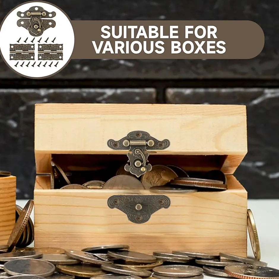 Quantité : le colis comprend 4 paires de loquets et charnières antiques, 8 charnières vintage en bronze et 56 vis de rechange.Design exquis : le loquet antique et les charnières sont conçus avec une apparence très exquise, en utilisant un design vintage gravé, qui correspond parfaitement à votre boîte à bijoux.Design pratique : il y a des trous de montage sur les charnières et les loquets de la boîte à bijoux, ce qui la rend facile à installer. Il est également équipé de suffisamment de vis pour votre utilisation, ce qui le rend facile à utiliser et à utiliser.Largement utilisé : les petites charnières de boîte et le loquet rétro peuvent être utilisés pour la décoration de boîtes à bijoux, boîtes rétro, boîtes à bijoux, boîtes en bois et armoires.Remarque : les données sont toutes mesurées manuellement, veuillez permettre une erreur de 1 à 3 cm en raison des différences de lumière et d’affichage, il peut y avoir des différences de couleur, veuillez vous référer à l’article réel reçu.