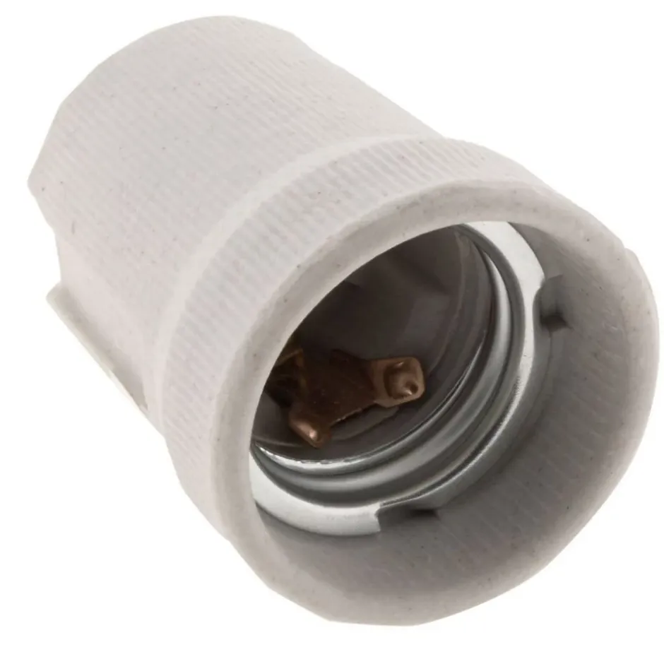Douille E27. Douille à vis pour luminaire. Format de culot : E27 (gros culot à vis). Matériau : porcelaine. Sans bague. Montage : à vis, facile à installer. Pour création ou rénovation de luminaires. Compatibilité électrique : 4A, 250V. Résiste à la chaleur, durable et sûre