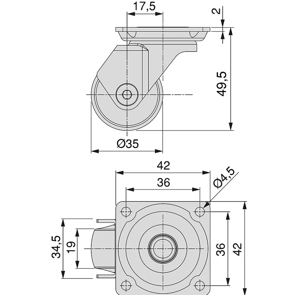 - Lot complet: 2 roulettes freinées + 2 non freinées