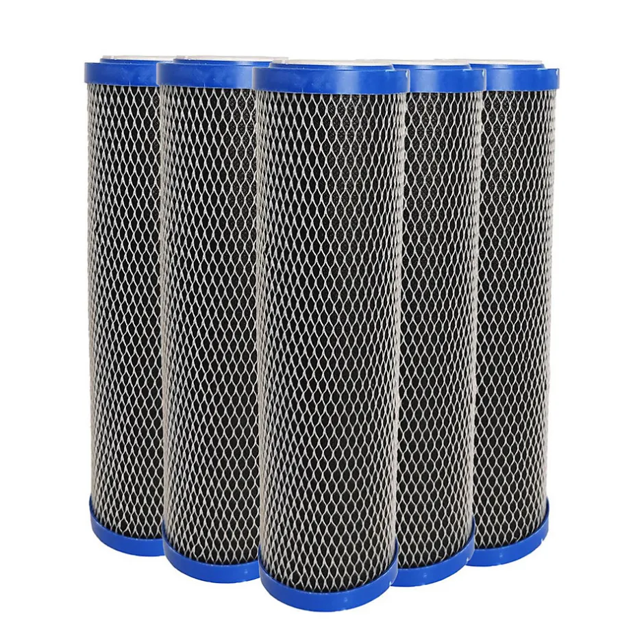 La composition du charbon bloc de ces cartouches permet aussi d’éviter la prolifération des bactéries et donc de conserver les propriétés filtrantes des cartouches plus longtemps qu’avec du granulat de charbon actif.La composition du charbon bloc de ces cartouches permet aussi d’éviter la prolifération des bactéries et donc de conserver les propriétés filtrantes des cartouches plus longtemps qu’avec du granulat de charbon actif.Ces cartouches sont indispensables pour filtrer une eau de ville ou de forage afin de garantir la distribution d’une eau saine, limpide et de haut qualité.Elles sont notamment utilisée dans des applications de purification de l’eau ou pour un système de filtre sous-évier.Pour l’installation de cette cartouche vous pourrez vous équiper d’un porte filtre simple ou d’un double porte filtre transparent insert laiton 1″ ou 3/4″ compatible en taille standard 9″3/4 ou disponible sur notre boutique.