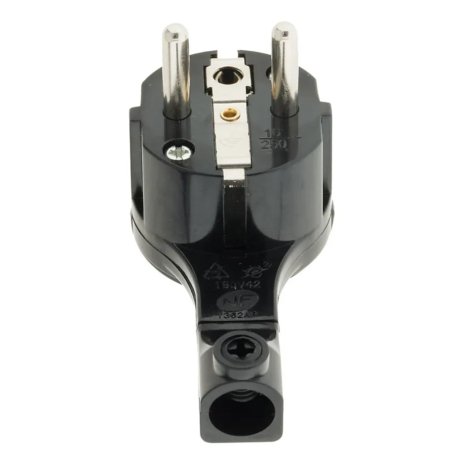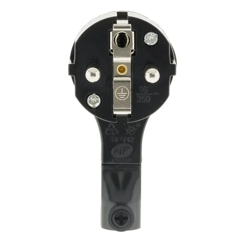 Caractéristiques de la fiche mâle 16A extraplate noire – Zenitech :Modèle : fiche électrique mâle extraplate 2P+T 16ACouleur(s) : noirSortie : droiteAnneau d’extraction pratiqueCompatibilité câble : HO5VV-F 3G1 / 3G1,5 mm²Puissance maximale : 3680 W sous 230 VCertification : NFLa fiche mâle extraplate 16A noire Zenitech offre une solution à la fois élégante et fonctionnelle pour vos branchements électriquesGrâce à son profil extraplat, elle permet un gain d’espace derrière les meubles et appareils électroménagers, tout en restant discrète. Son anneau intégré facilite la manipulation et le retrait de la fiche sans effort, évitant ainsi d’endommager le câble.Conçue pour supporter jusqu’à 3680W sous 230V~, elle est certifiée NF, garantissant une utilisation sûre et durable aussi bien en habitat qu’en milieu tertiaire.