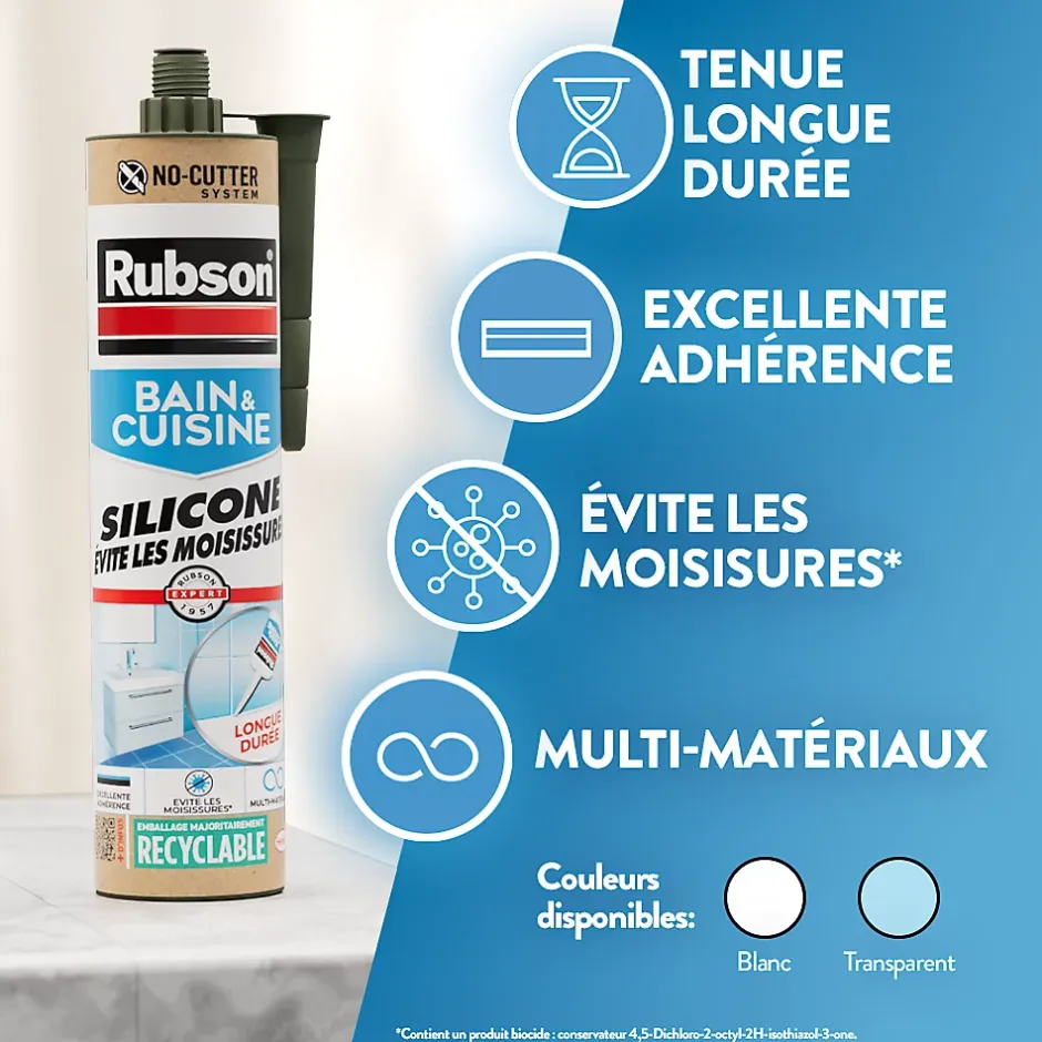 Mastic bain et cuisine Rubson blanc 280ml