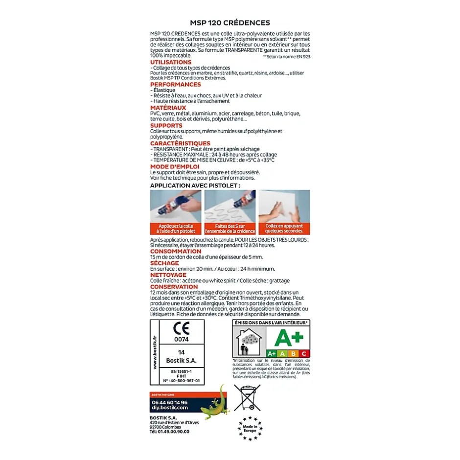 Découvrez le décapant colle Bostik, votre solution idéale pour éliminer les résidus de colle de moquette et de sol plastique. Ce produit performant agit rapidement, dissolvant les résidus en seulement 10 minutes et restant actif jusqu’à 4 heures pour garantir une élimination complète. Sa formule est conçue pour être sûre, n’attaquant pas les matériaux et préservant l’intégrité des surfaces traitées. Pour l’utiliser, découpez le revêtement en bandes de 50 cm et arrachez-les une par une. Pour les revêtements difficiles à arracher, versez le produit dans un coin et laissez agir pendant 20 minutes. Ensuite, appliquez le décapant directement sur les résidus de colle, laissez agir au minimum 10 minutes (et au maximum 4 heures), puis grattez la colle avec une spatule ou un couteau et aspirez les résidus. Laissez sécher pendant 12 heures avant de poser un nouveau revêtement. Le décapant colle Bostik est disponible en bidon métal de 1 litre, parfait pour les petits travaux, et en bidon de 5 litres pour les projets plus importants. Conservez le produit dans son emballage d’origine non ouvert à une température comprise entre +10°C et +30°C pour une durée de 12 mois.