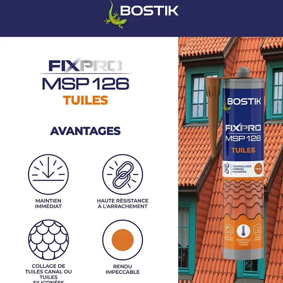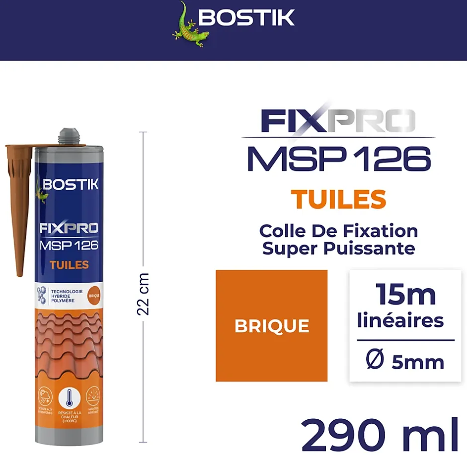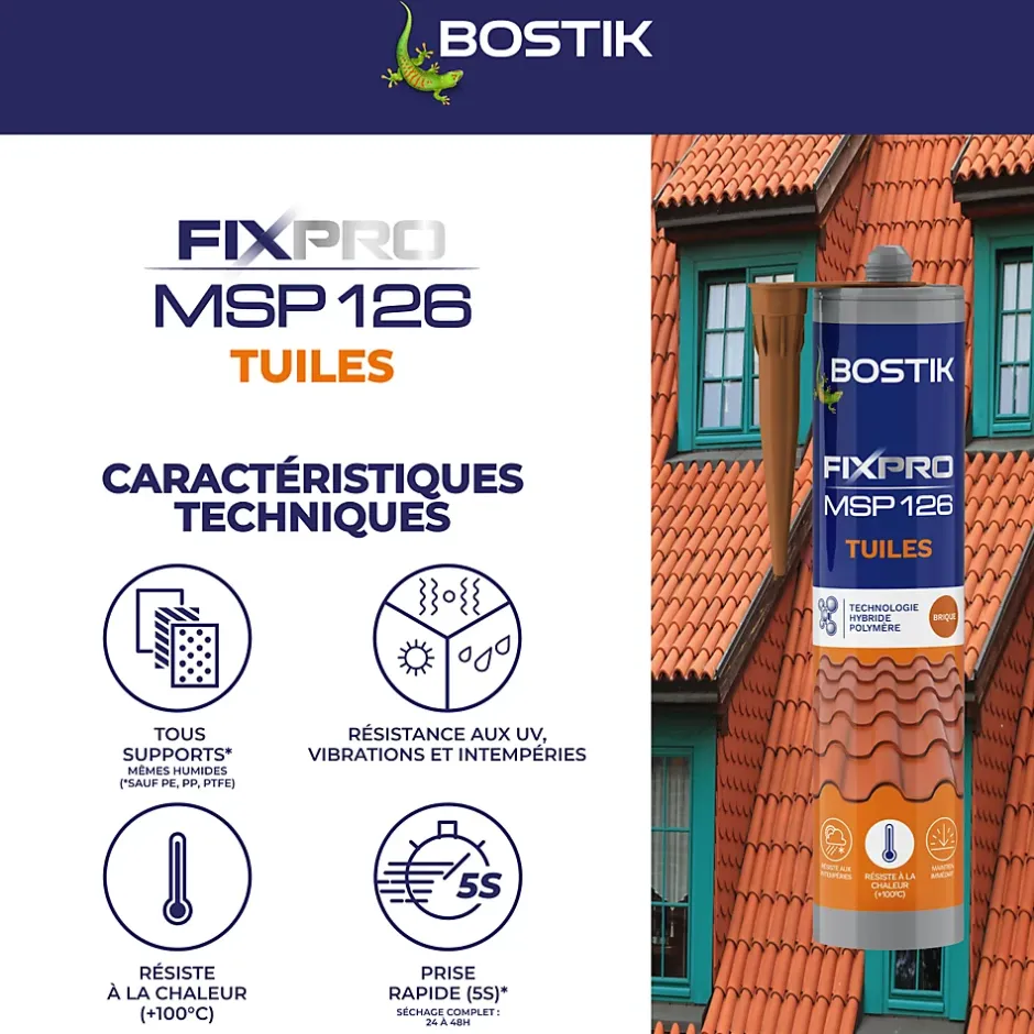 Bostik Fixpro MSP 126 tuiles est conçu pour une fixation solide et durable de vos tuiles et matériaux de couverture.