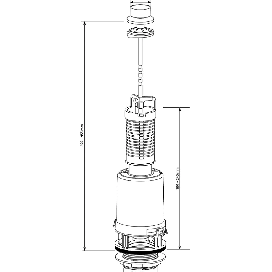 Mécanisme de chasse d’eau simple à tirette 40mm Flomasta avec hauteur réglable. Convient aux trous de couvercle de 10 à 42mm.