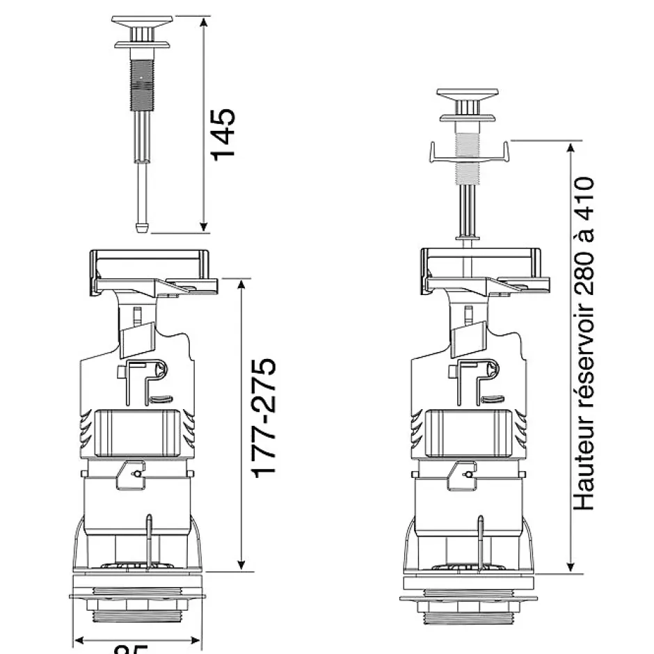 Montage simple et rapide.Pas de recoupe du trop-plein.Réglage télescopique, bouton blanc.