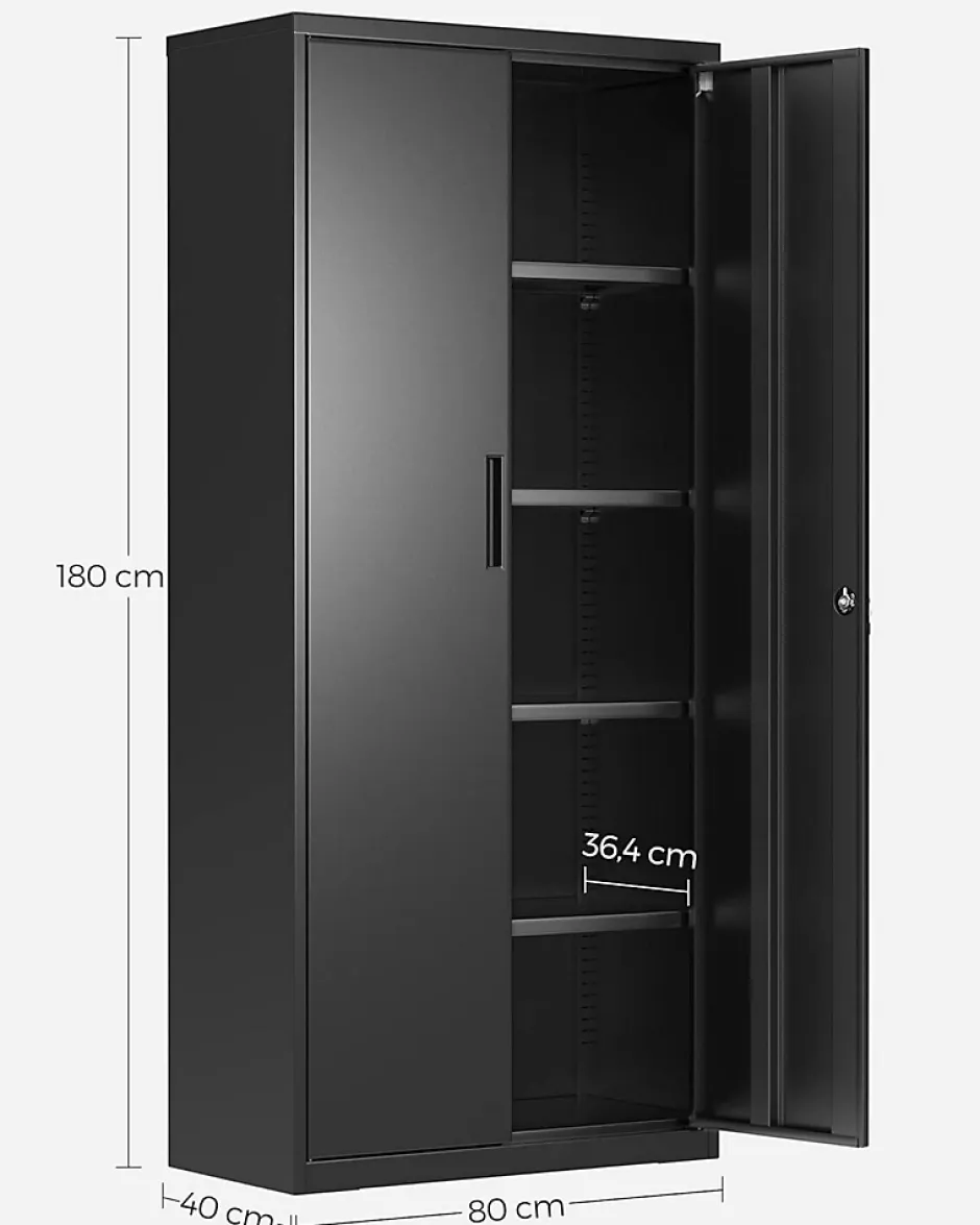 【MULTI-USAGES】Vous pouvez utiliser ce placard métallique dans votre bureau pour ranger vos documents, des classeurs pour simplifier le travail, dans votre garage pour ranger des outils, des livres pour cacher le désordre【CHARGE LOURDE】Cette armoire (40 x 80 x 180 cm) est fabriquée en acier de haute résistance. Chaque niveau supporte jusqu’à 25 kg, elle est solide et durable, elle vous accompagne pour des années à venir【ÉTAGÈRES RÉGLABLES】Les 4 étagères de cette bibliothèque sont réglables en hauteur, pratique pour ranger des objets de différentes tailles【EN MÉTAL】Ce meuble de rangement est fabriqué en acier traité par poudrage. Sa surface est résistante à la rouille, à l’huile et aux traces de doigts. Sa surface peut être facilement nettoyée et reste comme neuve