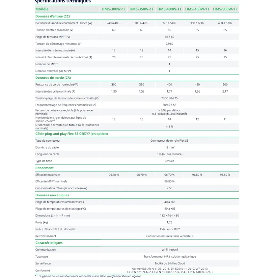 - Compatible avec un panneau solaire de 400 à 670 Wc