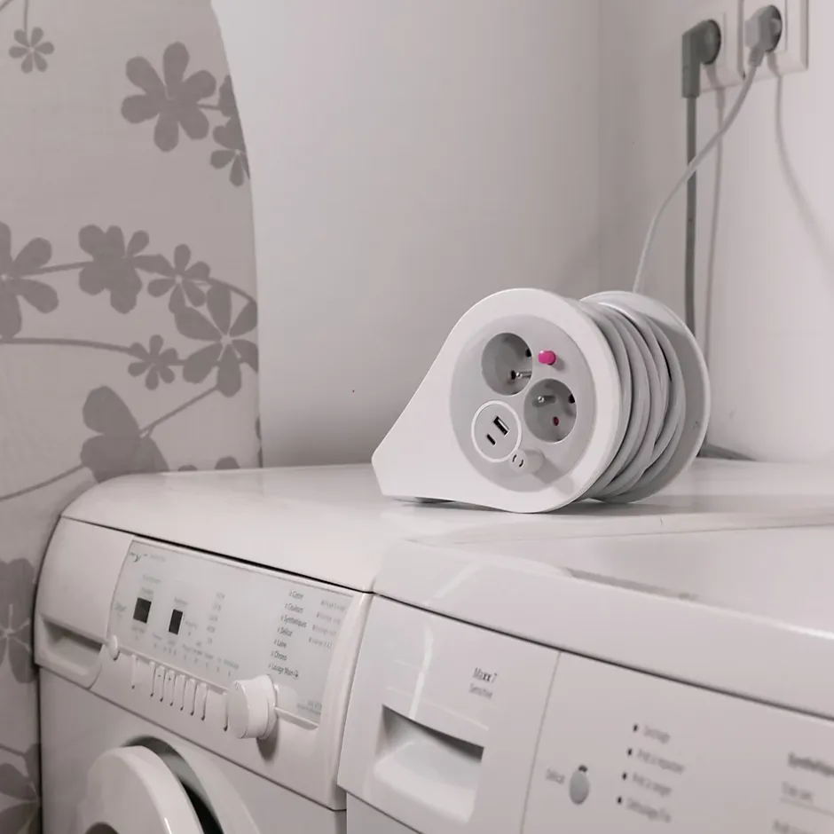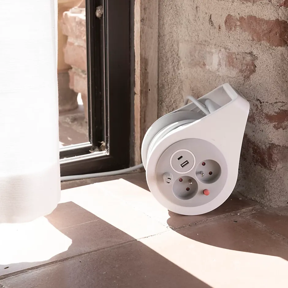 - Doté de 2 ports USB dont un USB-C, cet enrouleur vous permet de recharger vos appareils multimédias dernière génération, tout en branchant jusqu’à 2 autres appareils électriques. Compact et coloré, il s’intègre facilement dans votre intérieur.