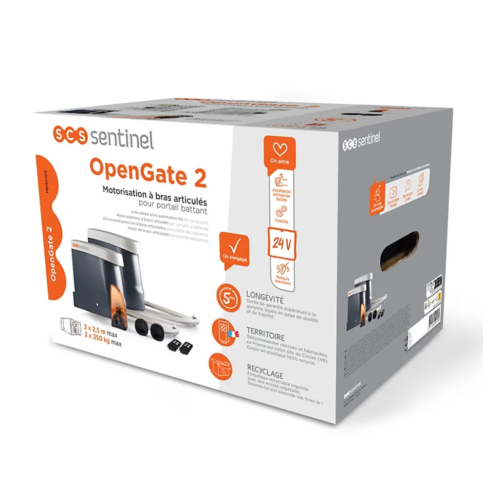 Motorisation à bras articulés OpenGate2 pour portail battant SCS Sentinel