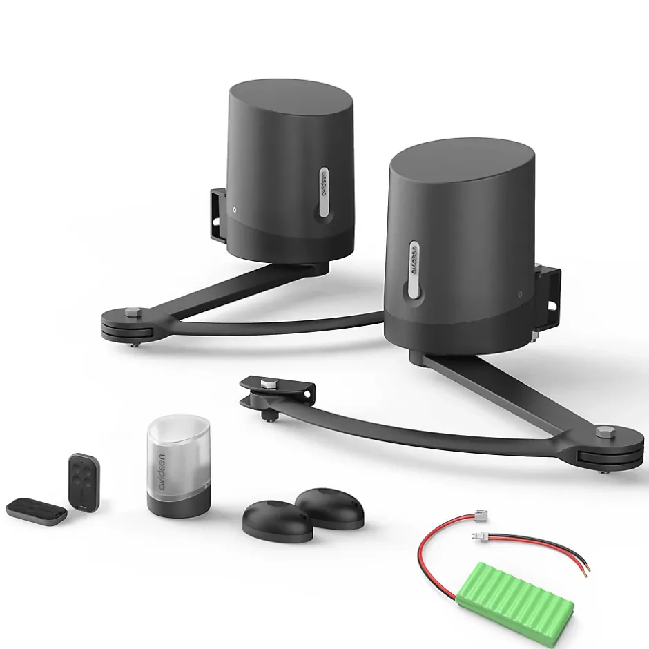 Un kit motorisation à bras pour portail battant avec la sécurité de la batterie de secoursLe kit comprend :1 motorisation à bras Avidsen Orane Connect (ref 114202)2 moteurs à bras articulés 24 VDC à électronique intégrée2 télécommandes à 4 boutons chacune1 feu clignotant 1 jeu de photocellulesPattes et équerres de fixation 1 module connecté Avidsen Home Gate avec capteur de position, précâblé1 batterie de secours 24 V (ref 114257V) Contrôlez l’accès à votre domicile depuis votre smartphoneGrâce au module connecté, prenez la main sur votre portail à domicile ou à distance via votre smartphone et l’application Avidsen Home. Vous êtes informé en temps réel de la position de vos battants, quel que soit l’endroit où vous vous trouvez. Commandez votre portail motorisé à la voixOrane Connect est un moteur compatible avec Google et Alexa. Chaque matin, demandez à votre assistant vocal d’ouvrir votre portail. Les soirs, demandez-lui de refermer les battants. Sans sortir de chez vous, contrôlez l’accès à votre domicile à la voix. Ouverture vers l’intérieur ou vers l’extérieur de mon entréeOrane Connect offre une ouverture maximale de 135° à l’intérieur de la propriété et une ouverture maximale de 90° à l’extérieur de la propriété. Pourquoi installer une batterie de secours ?En installant une batterie de secours avec votre motorisation de portail, aucune inquiétude à avoir en cas de coupure de courant. Vous pourrez ouvrir et fermer normalement votre portail motorisé. <div data-content-type= »html » data-appearance= »default » data-element= »mai