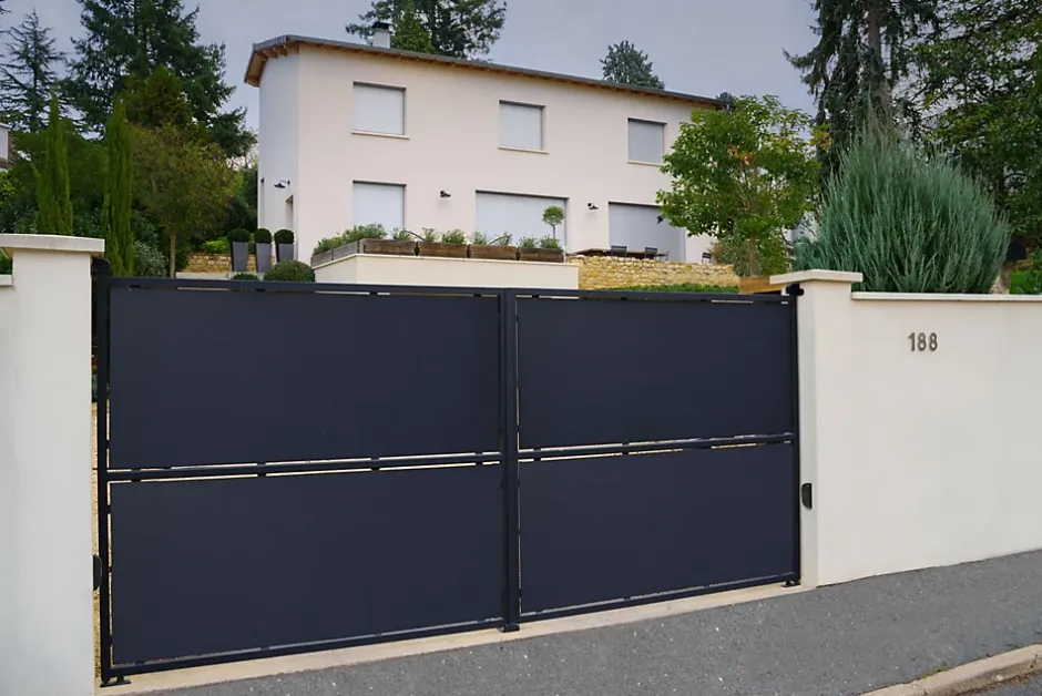 - Compatible avec les portails en bois, pvc (avec renforts), aluminium ou fer, avec des vantaux d’une hauteur maximum de 2m et largeur de 2, 5m et d’un poids maximum de 250kg par vantail.