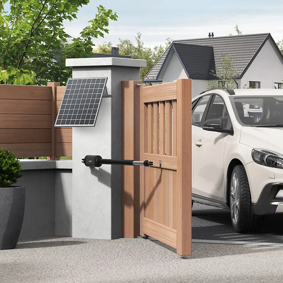 Kit solaire completContenu du kit :1 motorisation Avidsen Styrka 310 pour portail battant (Ref : 114170) :2 moteurs télescopiques électriques, avec vis sans finUn boitier électronique programmablePattes et équerres de fixationDeux télécommandes (4 boutons chacune)Un feu clignotant (obligation légale)Un guide pour le démarrage rapide1 kit solaire Avidsen pour motorisation (Ref : 114375)1 coffret avec un chargeur intelligent 2 batteries de 12V de capacité de 7000 mAh1 panneau solaire 20 watts2 télécommandes motorisation Avidsen (soit 4 en tout) (Ref : 114259)1 lot de 2 photocellules (ref 114359) Objectif confort et sécuritéPour garantir le confort et la sécurité de l’utilisateur, Styrka 310 est capable d’effectuer un arrêt en cas d’obstacle, puis de faire marche arrière. En plus, pour reproduire le mouvement naturel du portail, Styrka 310 opère un démarrage progressif et un ralenti en fin de course. La puissance et le silenceStyrka 310 peut actionner des battants imposants. Malgré ce gabarit, les bras télescopiques sont silencieux. C’est un véritable gage de calme pour l’utilisateur et pour le voisinage. L