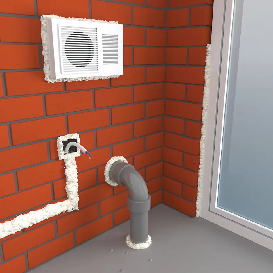 Mousse expansive de remplissage à haut rendement, jusqu’à 19 litres par aérosol selon FEICA TM 1003, aux excellentes propriétés thermiques et acoustiques qui protège contre la chaleur, le froid, l’humidité et le bruit.
