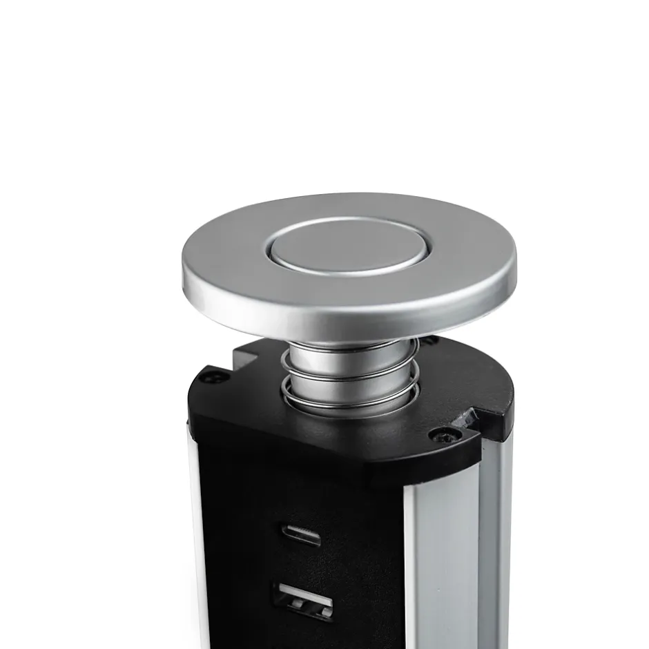 Multi-connecteur ou tour multiprises élévable avec 3 prises Schuko, 2 connecteurs USB A et USB C, charge rapide, installation facile et design escamotable, idéal pour cuisine, bureau et maison.