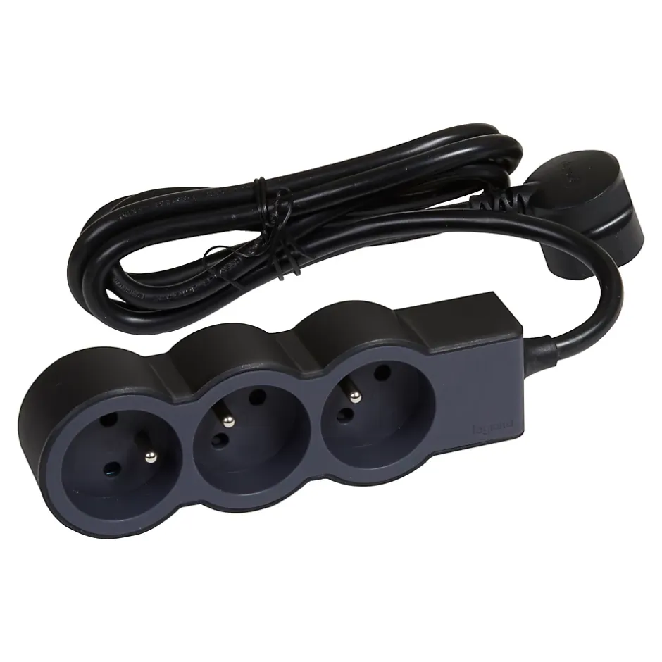 Multiprise 3 prises Legrand noir et gris 1.5 m