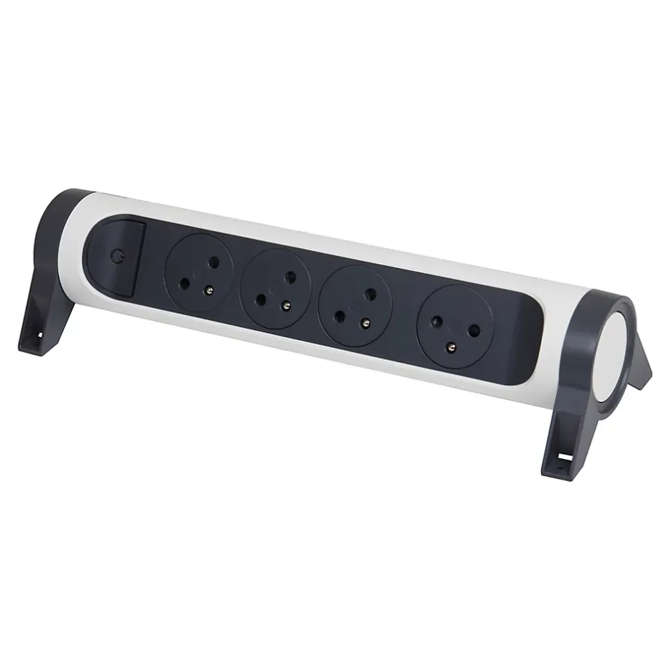 Multiprise 4 prises rotative à fixer Legrand blanc et gris