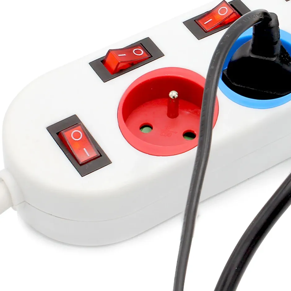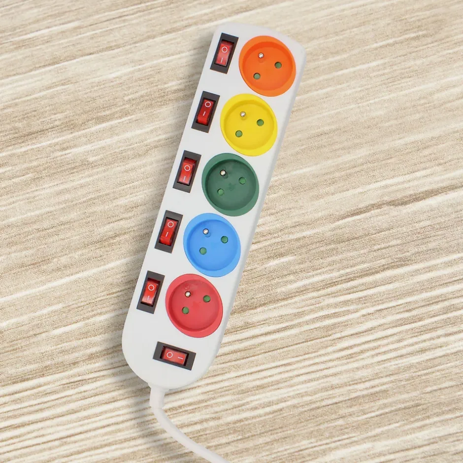 UTILISATION – Contrôlez votre consommation au plus près, avec ce bloc multiprise! Ses entrées en couleurs vous permettent de repérer plus facilement vos branchements, et ses interrupteurs situés en face de chaque sortie vous permettent de consommer plus intelligemment votre énergie !FACILE – Votre télévision et votre Home Cinéma sont branchés en même temps mais vous n’utilisez que la TV ? Pas de problème, consommez uniquement ce dont vous avez besoin, en éteignant les prises correspondant aux appareils non utilisés.INTERRUPTEUR – Les interrupteurs individuels vous permettent également d’assurer votre sécurité, en ne laissant allumés que les branchements dont vous avez besoin. Son câble de 150cm et sa forme rectangulaire vous permettent une accessibilité aisée et un rangement optimal.PRATIQUE – Les stickers de couleur du bloc multiprise vous permettent d’identifier vos câbles en un clin d’oeil. Contrôle facile et économies d’énergie au rendez-vous !CARACTERISTIQUES – Matières ABS – Normes NF – Alimentation 220-240 V, 50Hz – Ampérage: 16A maxi – Longueur câble: 150cm – Dimensions : 29 x 9 x 4 cm