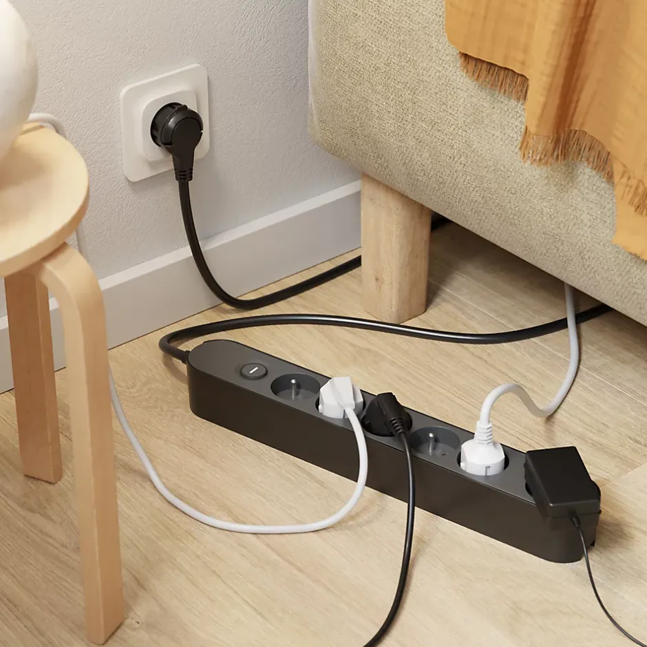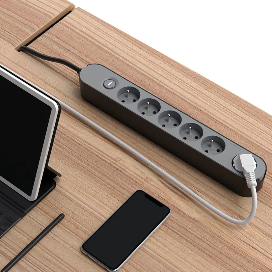 - Notre multiprise six prises, équipée d’une protection enfant pour plus de sécurité, permet de brancher des appareils en toute simplicité.