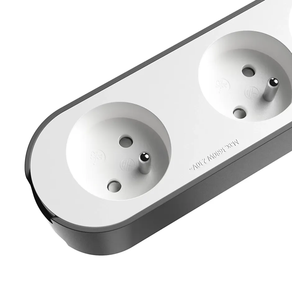 - Grâce à la protection intégrée contre les surtensions, la multiprise protège tous les appareils branchés, notamment contre les pics de tension, y compris en cas d’orage.