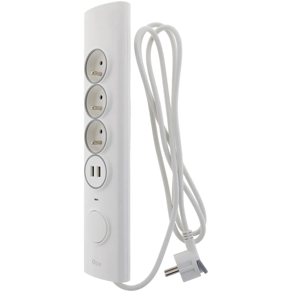 Multiprise d’angle parafoudre 4P 16A + 2 USB parafoudre précâblée – OtioCe bloc multiprise au design astucieux est idéal pour la cuisine, le bureau ou le salon. Il offre confort d’utilisation et protection pour tous les appareils électriques et multimédia contre les surtensions et la foudre.Pratique, il est muni d’une prise latérale pour brancher un chargeur sans encombrer les autres prises et de deux ports USB pour le chargement rapide de vos appareils nomades. Il est également doté d’un interrupteur qui vous permettra de réaliser des économies en éteignant tous les appareils d’un seul geste.Son installation est simple et s’effectue rapidement en fixant la multiprise grâce à sa platine arrière qui est démontable. Ce modèle est précâblé avec une fiche plate et un câble HO5VV-F 3G1mm² d’une longueur d’1,90m.Caractéristiques: 3P 16A + 1P 16A latérale en façade Version précâblée en HO5VV-F 3G1mm² Longueur du câble: 1.90 mètre Fiche plate + interrupteur Installation rapide grâce à la platine arrière démontableExiste en Option de câblage : à câbler (3415547600366), précâblé (3415547600359)