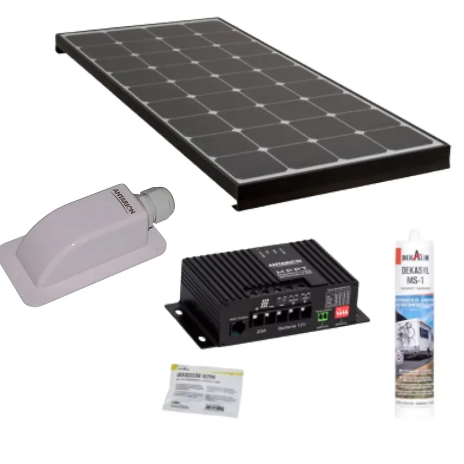 Panneaux solaires ultra performants équipées de cellules SUNPOWER, la technologie de production solaire la plus efficace du marché.Ces cellules très haut de gamme permettent d’obtenir un rendement jusqu’à 35% supérieur par rapport à un panneau classiqueDe plus, ces cellules ont une longévité inégalable avec une durée de vie allant jusqu’à 25 ans sans perte de puissance !• Gamme de panneaux solaires avec cellules SUNPOWER• Pattes de fixation en aluminium anodisé striées pour améliorer l’adhérence du panneau lors du collage sur le toit• Boitier de connexion étanche pour un haut niveau de sécurité• Diodes de dérivation haute performance pour minimiser les chutes de puissance en cas de faible ensoleillement• Protection en verre trempé spécialement conçu pour résister aux intempéries• Montage en série ou en parallèle possible et illimité• Dimensions : 146.5 x 54 x 6 cm• Poids : 14 kgDimensions du câble: 5mRégulateur MPPT 20A :• Le régulateur MPPT 20A (Maximum Power Point Tracking) Antarion ajuste en permanence la tension et l’intensité de charge pour obtenir le meilleur rendement solaire possible• Tension de charge paramétrable en fonction du type de batterie.• Convient pour toutes batteries acides, gel, AGM ou lithium en 12V ou 24V• Deuxième sortie batterie pour pouvoir charger la batterie moteur• Puissance solaire de 320W max