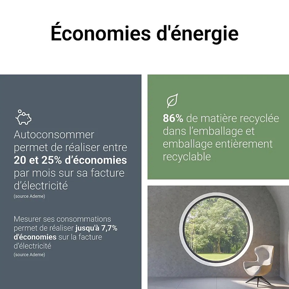 Transformez votre logement en une maison intelligente et économe grâce à ce pack de démarrage connecté. Idéal pour les installations photovoltaïques monophasées, il permet de suivre en temps réel la production de votre installation photovoltaïque, de maîtriser votre consommation globale, et de réduire vos factures d’énergie sans compromis sur le confort. Pack adapté aux contrats souscrits en 100% autoconsommation ou autoconsommation avec revente de surplus