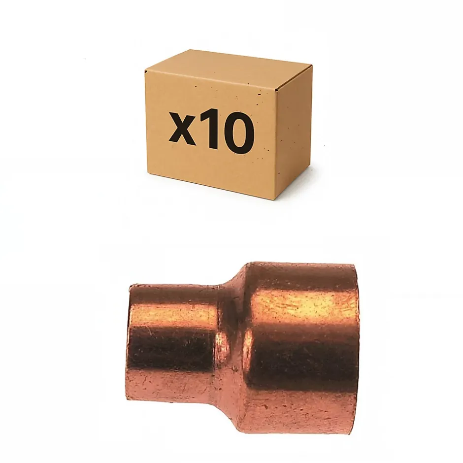 Offre PACK diamètres standards pour installation de plomberie, chauffage, sanitaire : 10 Reductions cuivre à souder plomberie femelle femelle 22-18. Référence : D189255. EAN : 3534990001961
