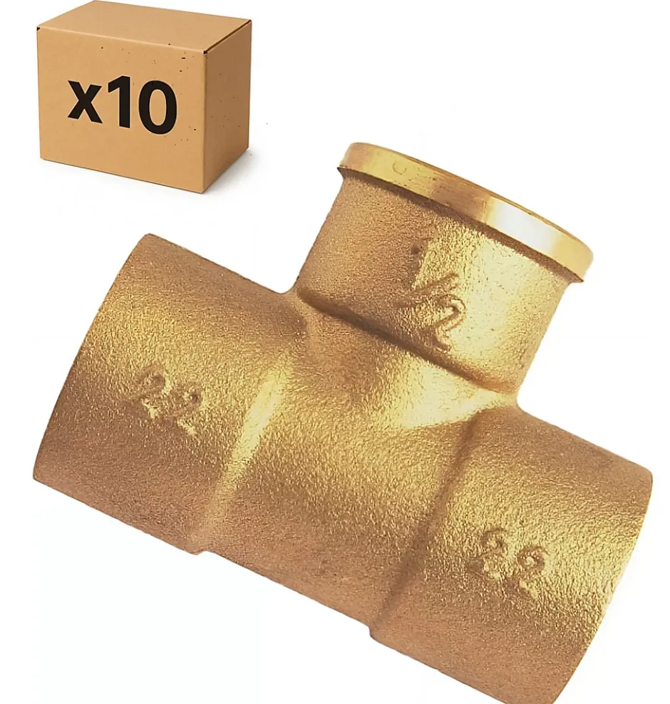 Offre PACK diamètres standards pour installation de plomberie, chauffage, sanitaire : 10 Tes a souder laiton plomberie femelle diamètre 1/2″ (15×21) pour tube cuivre diamètre 18 . Référence : D21008B. EAN : 3534989997763