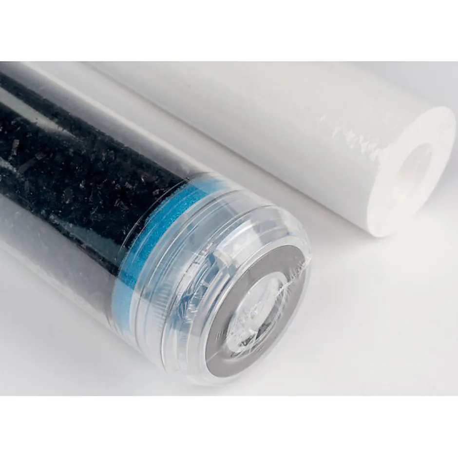 Pack de 3 cartouches de filtration pour systèmes d’eau de boisson sous-évierAffinage de l’eau de boisson et protection des membranes d’osmoseCartouches universelles compatibles tous filtres-pot 10 »Triple niveau de filtration : filtration desimpuretés 5μ, filtration des matières organiques par charbon actif, filtration des impuretés 1μ