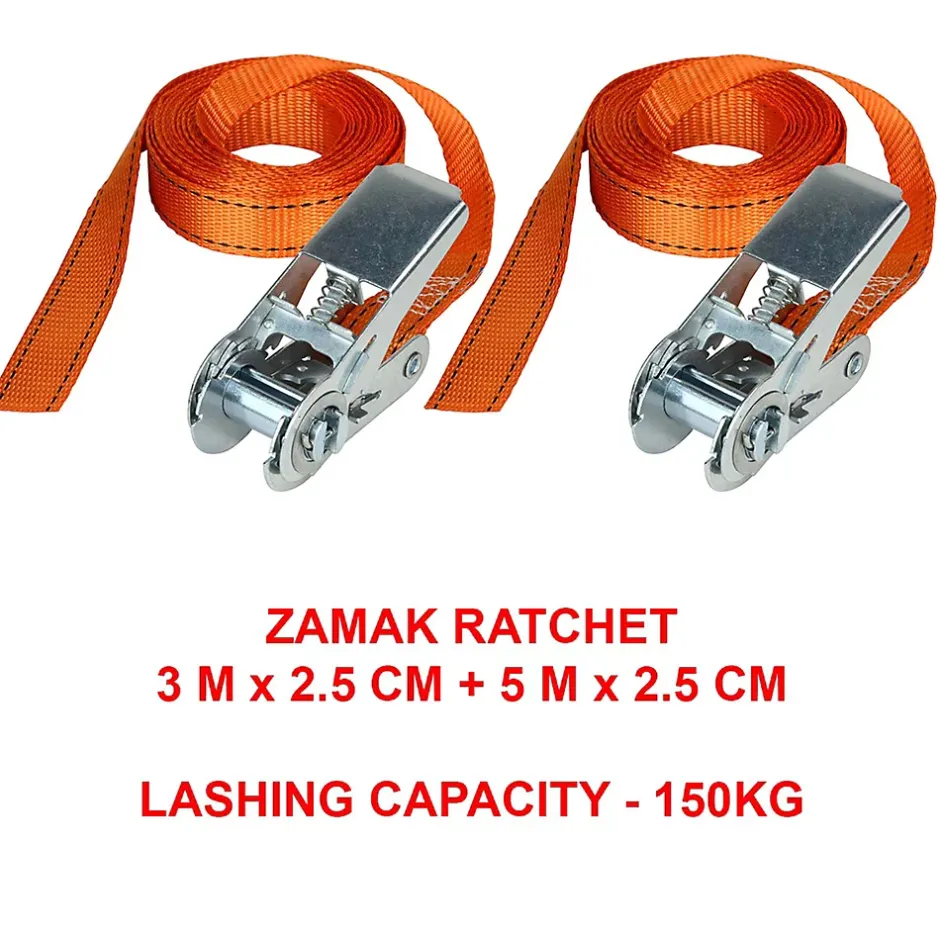 - PACK: 4 tendeurs (2*60 cm + 2*80 cm) + 2 Sangles (2,5mx2,5cm) + 2 Sangles à Cliquet (2mx2,5cm + 5×2,5cm)