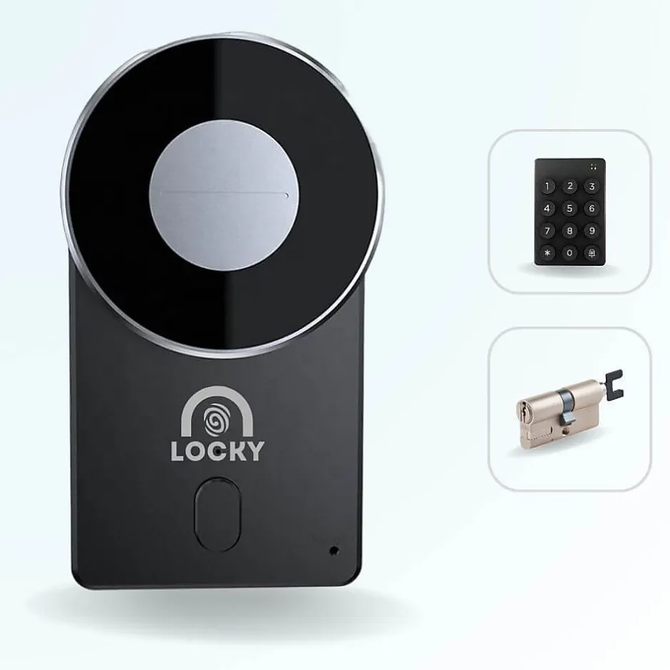 Facilitez-vous l’accès et finissez-en avec les clés !Avec la serrure connectée électronique LOCKY, vous accédez facilement à votre domicile, votre bureau ou une location grâce à une application sur Smartphone, des codes ou une télécommande (en option).Cette serrure électronique convient à de multiples applications : d’une utilisation familiale grand public aux solutions professionnelles spécifiques et exigeantes.Ce pack inclut la serrure motorisée, le clavier sans-fil et un cylindre ajustable à votre porte.FonctionnalitésDéverrouillage facileOuvrez votre serrure par code (jusqu’à 250 codes différents) ou avec l’application smartphone.Serrure connectéePilotez votre serrure avec votre Smartphone via Bluetooth ou via Internet (en option) et l’application en français LOCKY Smart Lock disponible gratuitement pour Android et iPhone.Gestion des accès simpleCréez, modifiez et supprimez des accès permanents ou temporaires. Vérifiez l’historique des ouvertures de la serrure.Super CodesUtilisez des codes cycliques avec plages horaires répétables (tous les mardis de 16h à 20h par exemple), personnalisés ou à usage unique.Clés virtuelles illimitéesPartagez ou révoquez des accès avec d’autres utilisateurs de l’application LOCKY Smart Lock très facilement grâce aux eKeys.Gestion à distanceProfitez de toutes les fonc…