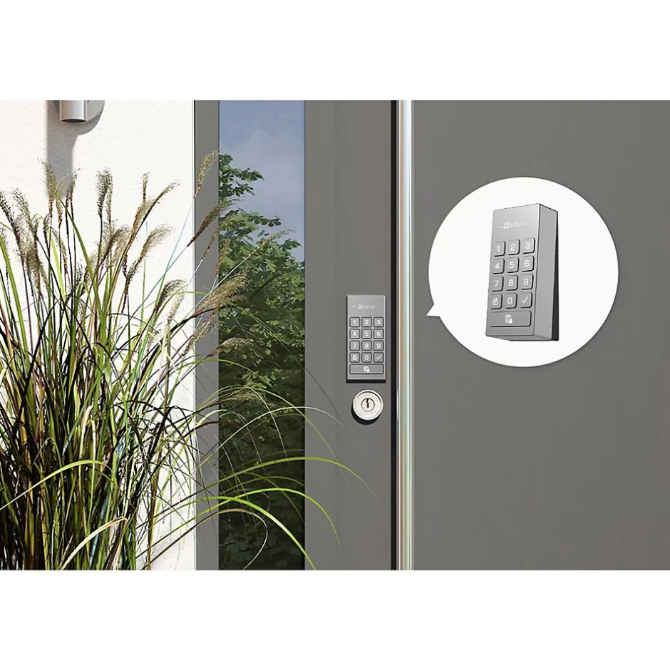 - C’est beaucoup plus facile puisque vous n’avez plus besoin de chercher des clés. Vous et les membres de votre famille pouvez entrer par le biais d’un smartphone, d’une carte de proximité ou d’un clavier ; profitez totalement de la vie pratique sans clé.