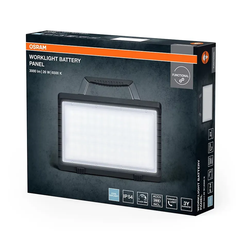 - LUMIÈRE EFFICACE : Lampe de travail à piles avec couleur de lumière blanche froide (6500K). Répartition particulièrement homogène de la lumière grâce à la forme du panneau.