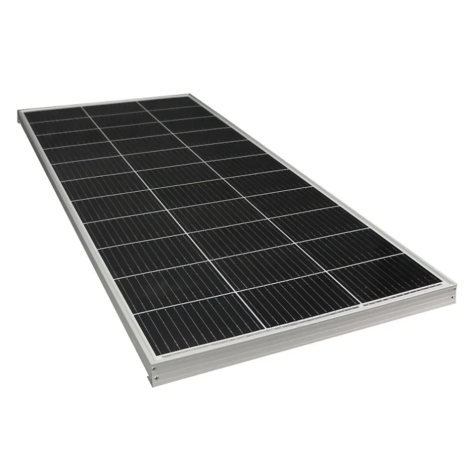 Panneaux solaires premier choix avec cellules monocristallines pour un rendement amélioré.Profils aluminium légers et robustes conçus pour un aérodynamisme optimal adapté aux véhicules de loisirs.Pose simple et rapide.Ce pack contient : 1 x panneau solaire E-SSENTIAL Flat 200W, 2 x câble anti UV double, 1 x passe toit étanche slim.Puissance nominale : 200WTechnologie : MonocristallinTension à puissance max : 22VCourant à puissance max : 10.5ARendement cellules : 20%Cadre : Aluminium anodise noir / Rails spécifiques VDLType de fixation : Par collageFinition : Full blackConnectique DC : Pré-monté avec câble 5mProtection / sécurité : Diode anti-retour / câble anti-UVDimensions du produit (LxlxP) : 146.8x67x4.45cmPoids : 12kg