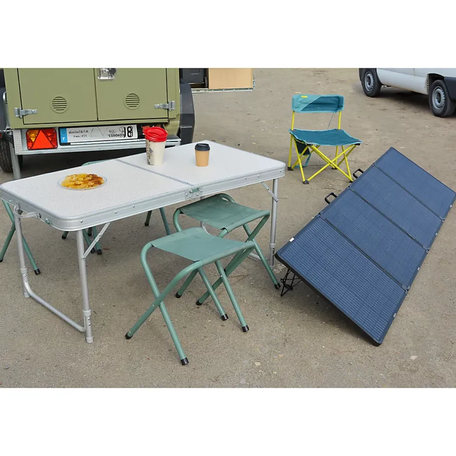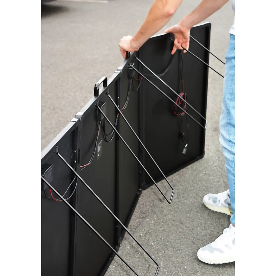 Panneau solaire pliant cadré 315W. Matière PET, EVA, ETFE. Garantie 2 ans. Puissance maximale du panneau solaire 315W. Tension nominale du panneau solaire 40V. Type de panneau solaire : monocristallin. Format du panneau solaire : pliant. Fixation via les œillets. Câbles MC4 (paire de) x1 : longueur 2m. Dimensions : 236.3 x 77.5 x 2 cm déplié et 77.5 x 58.8 x 8 cm plié. Modèles d’Izywatt recommandés : Izywatt 1500 réf 39207, Izywatt 2400 réf 39208