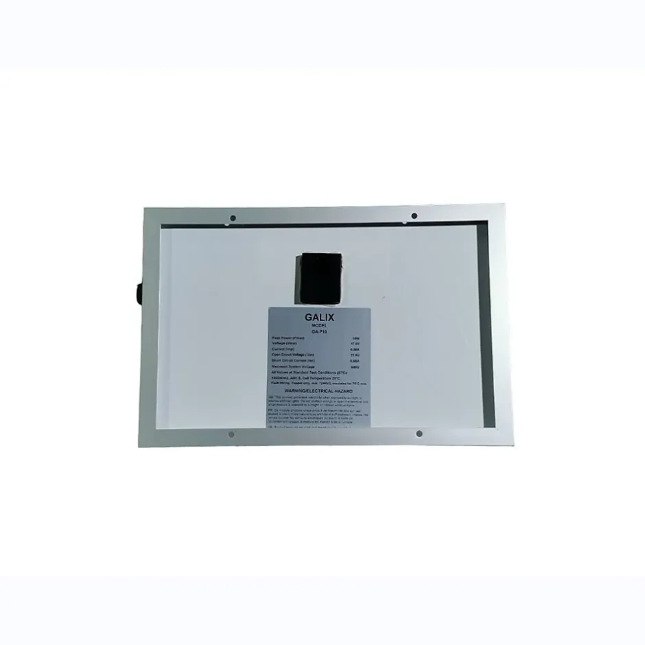 Panneau solaire Série Polycristallin 10WDimensions : 365 x 240 x 17mm* Alimentation Lampes à LED* Alimentation Batteries de petite taille* Alimentation des petits appareils électriques: Haut-parleurs, Radios, Appareils photo, Téléphones portables…Ces usages favorisent l’autoconsommation d’énergie solaire, ce qui peut réduire les coûts énergétiques et contribuer à une empreinte carbone plus faible »Sélection des meilleures cellules poly afin d’optimiser le rendement au m2Fabriqué pour faire face à des conditions météos difficilesCadre en aluminium anodisé et renforcé avec une double paroi