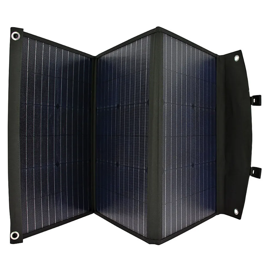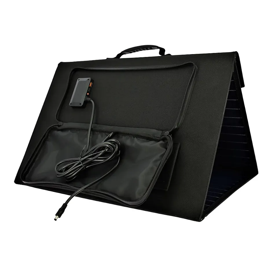 – Recharge des accessoires électroniques dans toutes les situations.- Léger, compact et puissant.- Cellules monocristallines haut rendement.- Inclinaison du panneau ajustable pour une meilleure orientation face au soleil.- Possibilité de rester à l’ombre tout en plaçant le panneau au soleil.- Transport et rangement faciles.- 2 sorties USB + 1 sortie JackPuissance nominale : 60WTechnologie : MonocristallinTension a puissance max : 23VCourant a puissance max : 3,54ARendement cellules : 20%Cadre : PlastiqueType de fixation : A poser + œilletsFinition : sacoche polyester 1200dConnectique DC : Câble 1,5m prise jack mâle dc55215 + USB 5v 3.4a 9v 2.5a 12v 2a max + USB C 5v 3a, 9v 3a , 12v1.5a maxProtection / Sécurité : surcharges et court-circuitDimensions hors tout en cm produit ( l x l x h ) : Déplié 126.5×36.5×25 plié 36.5x36x4.5Poids : 3kgLivré avec : 1 embout jack mâle DC 5,5×2,5mm + 1 embout jack mâle DC 3,5×1,35mm + 1 embout jack mâle DC 8mmCe pack contient : fournis avec câble jack + 3 embouts de connections standardCâble : 2,4 mMatière du contenant : 1200D polyesterTension : 12v