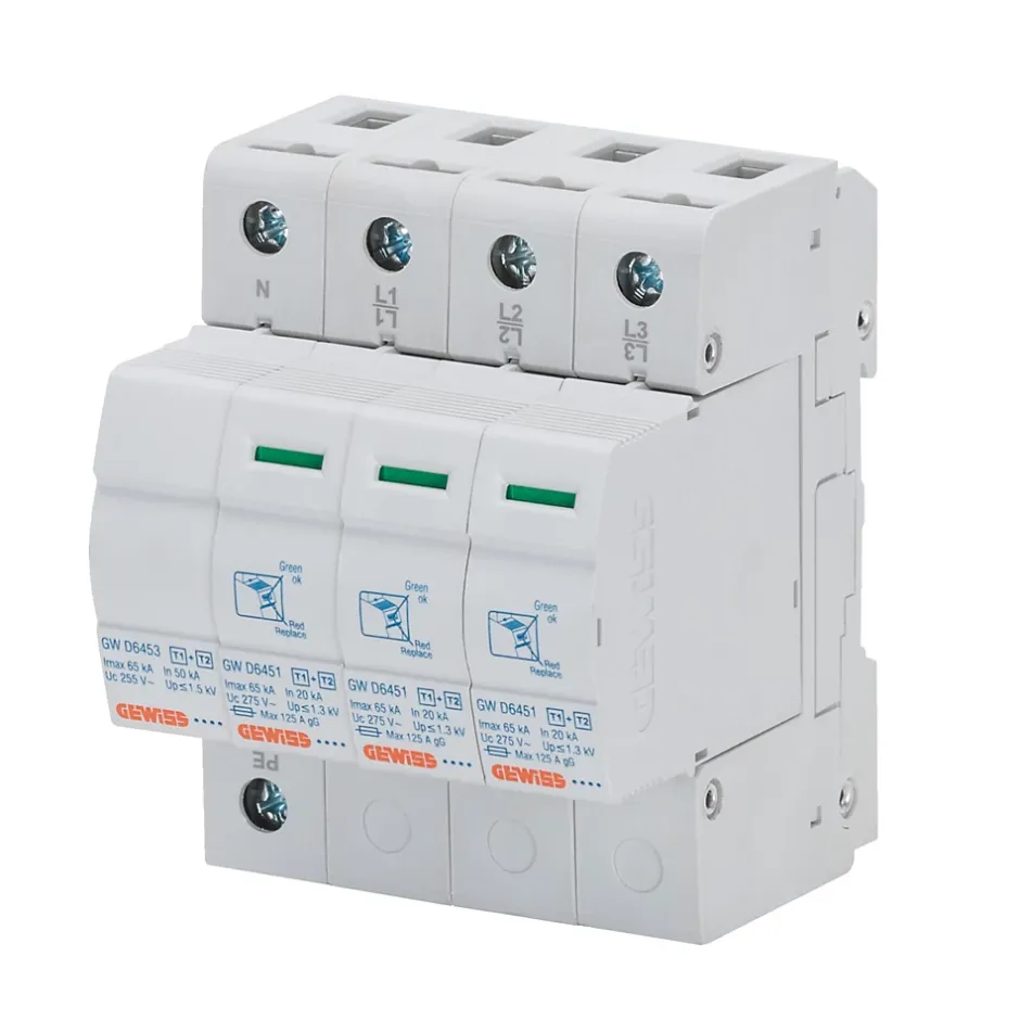 Le parafoudre combiné Type 1+2 est conçu pour protéger efficacement les installations électriques triphasées + neutre contre les surtensions d’origine atmosphérique (foudre) et les surtensions de manœuvre.Classé Type 1+2, il permet de traiter en un seul dispositif les décharges directes liées à la foudre ainsi que les surtensions transitoires induites. Installé en tête d’installation, il protège les équipements sensibles dès l’origine du réseau électrique.Avec un courant de décharge nominal In de 12,5 kA et un courant maximal Imax de 12,5 kA (onde 10/350 µs), il assure un niveau de protection adapté aux installations tertiaires et résidentielles triphasées. Son niveau de protection Up ≤ 2,5 kV limite efficacement les surtensions résiduelles.Compatible avec les réseaux 230/400 V AC en schémas TT et TNS, il se distingue par son format compact de 4 modules DIN, optimisant l’encombrement dans le tableau électrique. Les cartouches enfichables remplaçables et l’indicateur mécanique de fin de vie facilitent la maintenance.Conforme à la norme CEI EN 61643-11, ce parafoudre constitue une solution fiable, compacte et simple à installer pour sécuriser durablement les installations triphasées.