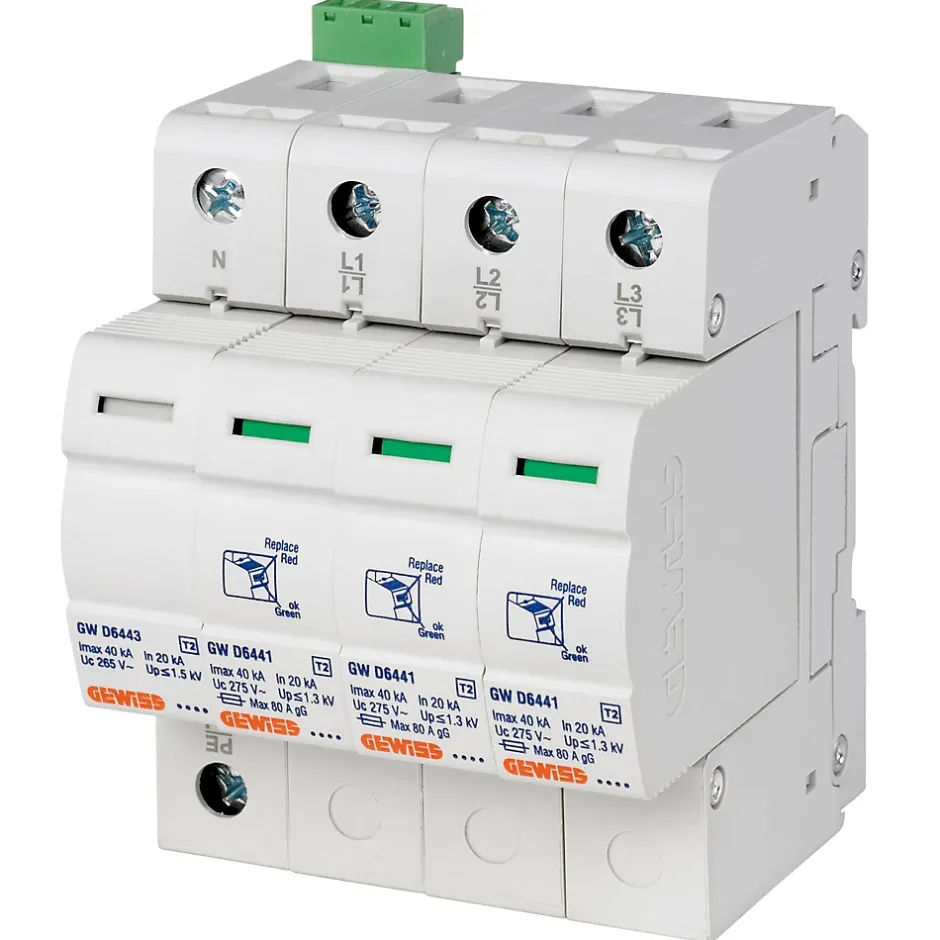 Le parafoudre Type 2 est conçu pour protéger efficacement les installations électriques triphasées + neutre contre les surtensions d’origine atmosphérique indirecte et les surtensions de manœuvre.Destiné à être installé en aval d’un parafoudre principal Type 1 ou dans les réseaux sans exposition directe à la foudre, il assure une protection complémentaire des équipements sensibles.Avec un courant de décharge nominal In de 20 kA et un courant maximal Imax de 40 kA (onde 8/20 µs), il absorbe efficacement les pics de tension transitoires. Son niveau de protection Up ≤ 1,5 kV garantit une limitation performante des surtensions résiduelles.Compatible avec les réseaux 230/400 V AC en schémas TT et TNS, il intègre un contact auxiliaire de fin de vie permettant le report à distance de l’état du dispositif, facilitant ainsi la maintenance préventive.Son format compact de 4 modules DIN optimise l’encombrement dans le tableau électrique. Les cartouches enfichables remplaçables et l’indicateur visuel d’état simplifient le contrôle et l’entretien.Conforme à la norme CEI EN 61643-11, ce parafoudre constitue une solution fiable et performante pour sécuriser durablement les installations triphasées.