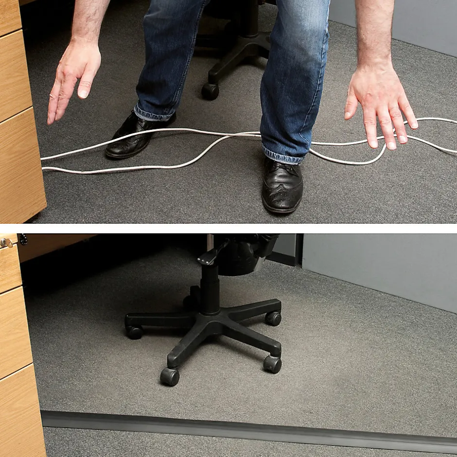 - Protection des câbles sur le sol. Aucun outil requis, il suffit d’ajuster le produit autour des câbles. Taille intérieure 17 x 9 mm
