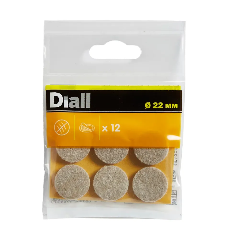 Patin en feutre auto-adhésifs Diall 22 mm x 12, beige.