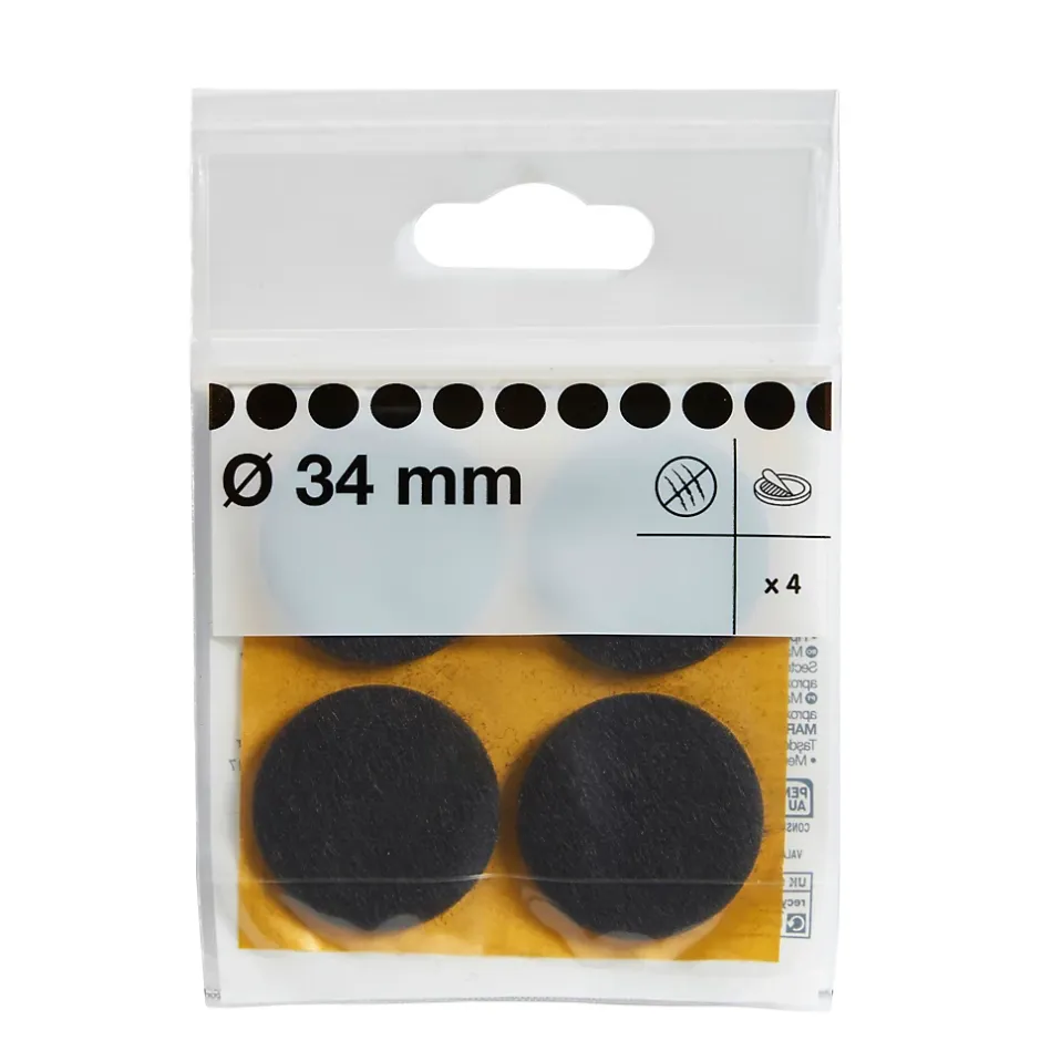 Patin en feutre auto-adhésifs Diall 34 mm x 4, marron.