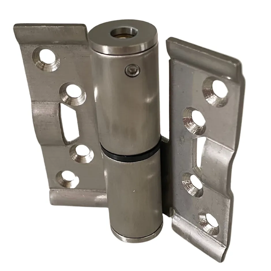 - Ressort en inox dans la broche creuse, la tension du ressort est réglée sur le côté supérieur de la paumelle à l’aide d’un tournevis plat et est bloquée latéralement à la paumelle à l’aide d’une clé Allen de 3,5 mm.