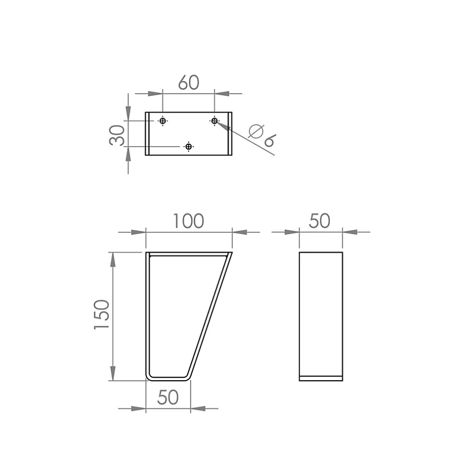 Pied de meuble triangle en acier noir H. 15 cm